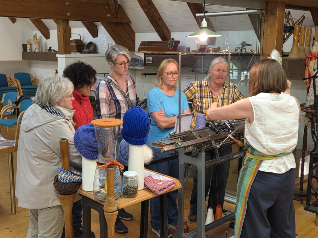 Mit beeindruckender Geschicklichkeit zeigen die Strickerinnen, wie auf diesen antiken Maschinen Schals, Mützen, Lesezeichen und Socken entstehen. Kommen Sie vorbei und beobachten Sie, wie unsere Strickerinnen ihre Kreationen lebendig werden lassen.